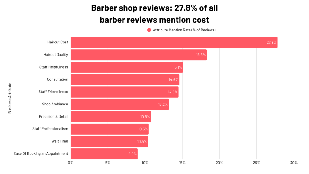 27.8% of all barber reviews mention cost.