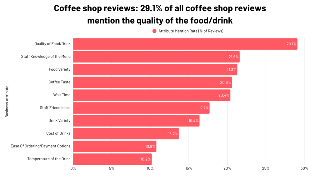 29.1% of all coffee shop reviews mentioned the quality of the food or drinks they purchased.